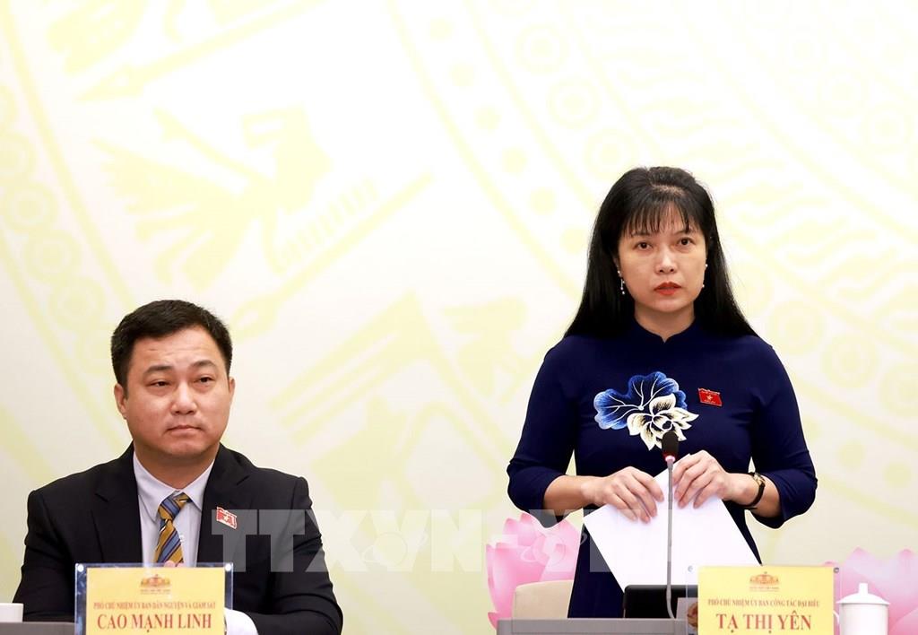 Phó Chủ nhiệm Uỷ ban Công tác đại biểu Quốc hội Tạ Thị Yên trả lời câu hỏi của các cơ quan thông tấn, báo chí. Ảnh: Tuấn Anh - TTXVN