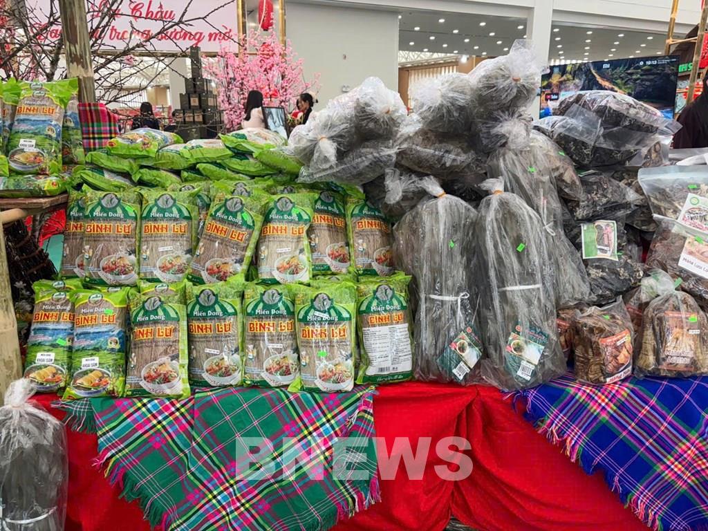 Khu trưng bày, giới thiệu các sản phẩm OCOP, sản phẩm đặc trưng, đặc sản tiêu biểu tỉnh Lai Châu. Ảnh: Uyên Hương/Bnews/vnanet.vn