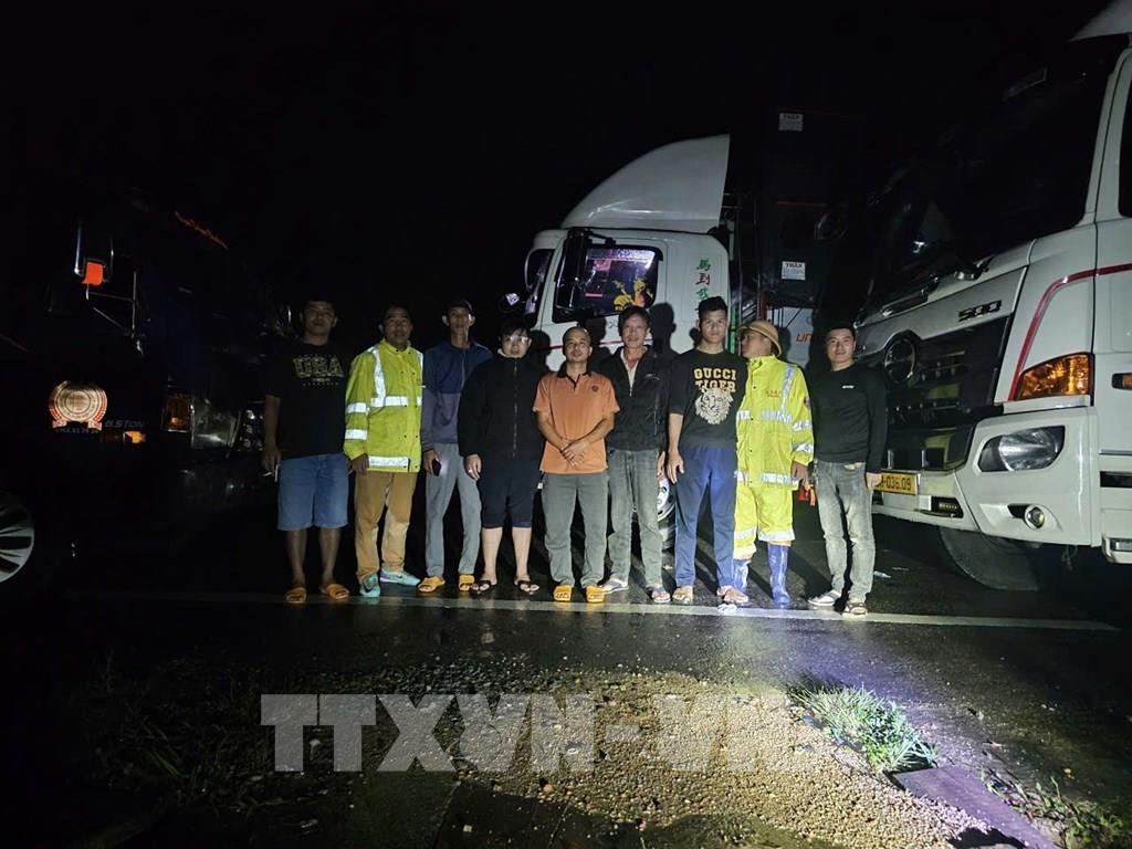 Những lái xe được lực lượng Cảnh sát giao thông giải cứu sau 2 ngày mắc kẹt trên đèo Khánh Lê. Ảnh: TTXVN phát