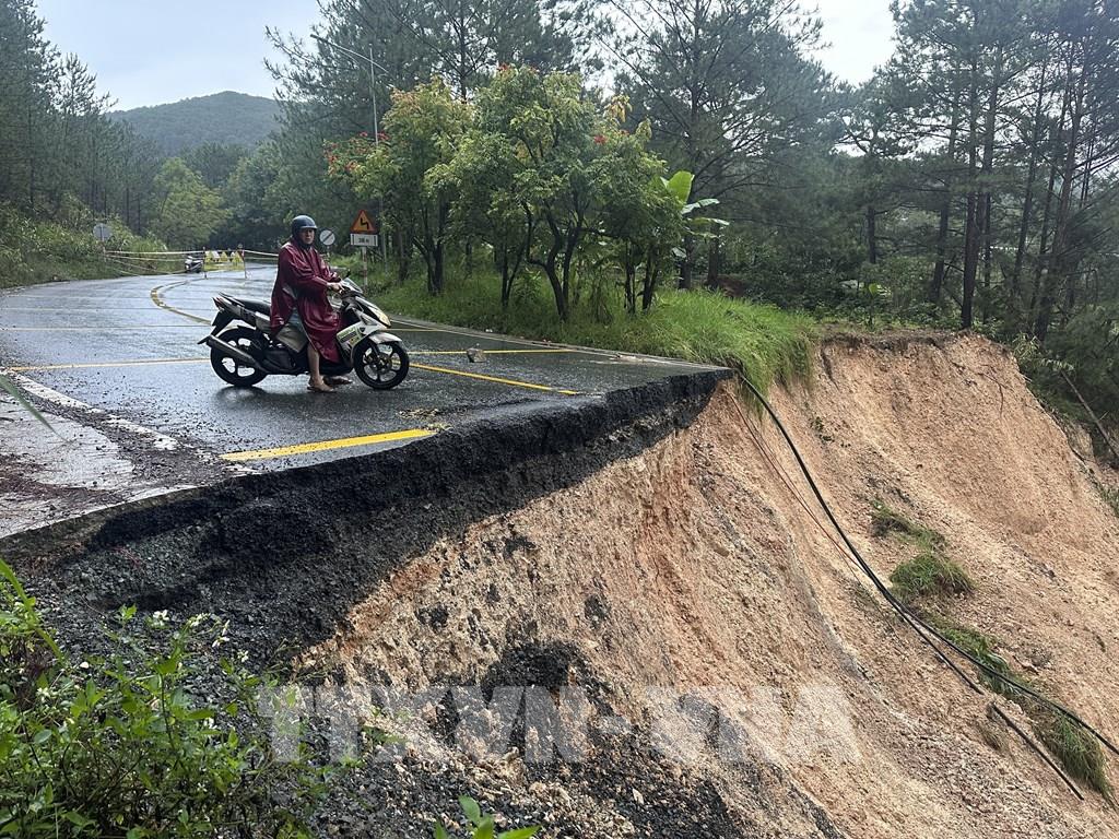 Đèo Mimosa - tuyến chính vào Đà Lạt - bị sạt lở nghiêm trọng với đoạn đường dài gần 70 m đổ sụp xuống vực, buộc lực lượng chức năng phong tỏa và phân luồng toàn bộ phương tiện trong đêm 19/11.