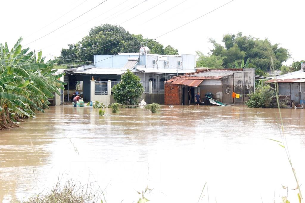 Nhiều hộ dân tại phường Hàm Thắng (Lâm Đồng) vẫn bị ngập sâu, người dân gặp nhiều khó khăn trong sinh hoạt hàng ngày. Ảnh: Nguyễn Thanh – TTXVN