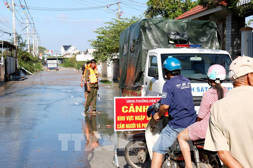 Tối ngày 4/12, lực lượng công an đã phong tỏa tuyến đường quốc lộ 1A do ngập sâu đoạn qua địa bàn xã Hàm Thắng (Lâm Đồng).