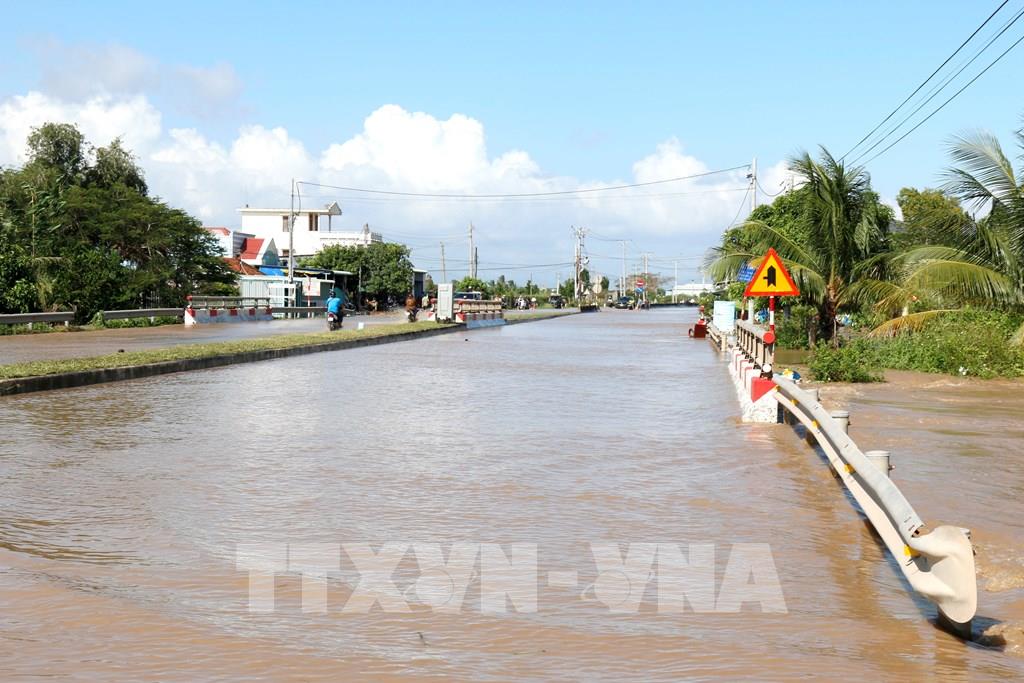 Tuyến đường tại xã Hàm Thắng (Lâm Đồng) ngập sâu trong nước. Ảnh: Nguyễn Thanh - TTXVN