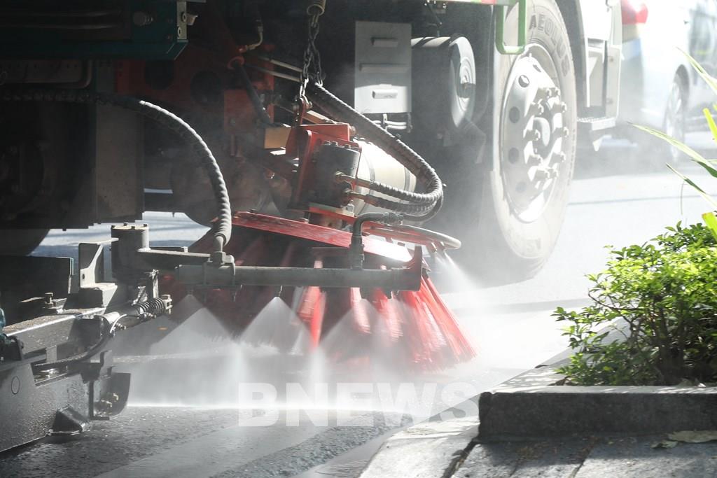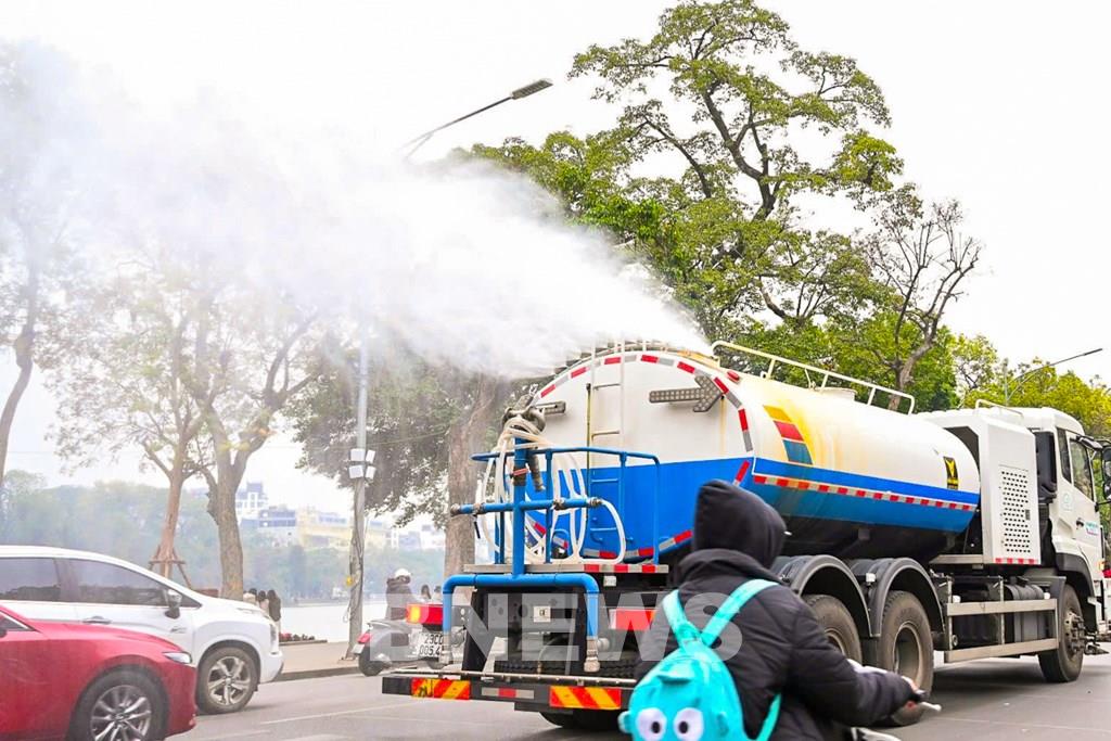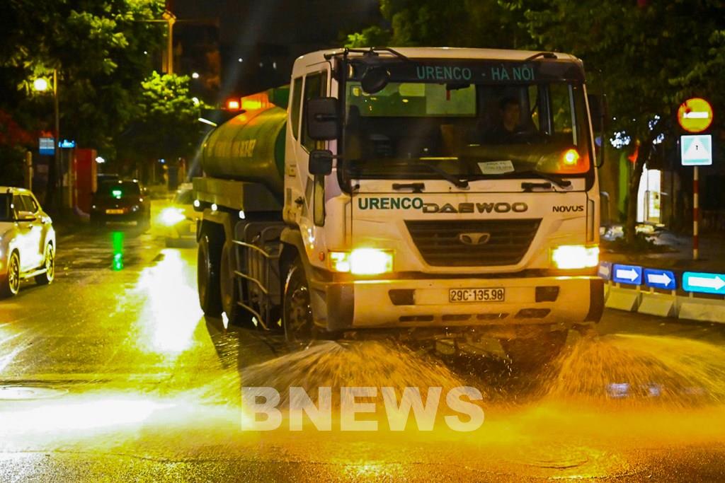 Nhiều xe thiết bị mới đã được huy động để thực hiện quét rửa đồng thời tại các tuyến phố trung tâm. Thời gian hoạt động tăng cường cũng được kéo dài từ 9 giờ sáng đến 23 giờ đêm, đảm bảo các khu vực luôn sạch sẽ ngay cả trong thời gian cao điểm. Ảnh: Đức Hạnh/Bnews/vnanet.vn