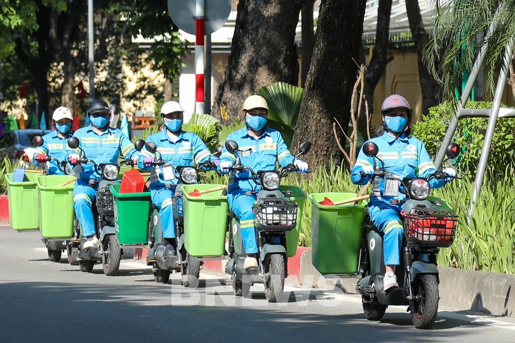 Sử dụng xe điện 2 bánh về sinh tần suất làm sạch được tăng lên đáng kể, lên đến 20 phút/lượt. Việc ứng dụng công nghệ này tối ưu hóa quy trình làm việc, giúp giảm gánh nặng cho người lao động trong khi vẫn đảm bảo sự sạch sẽ không gián đoạn. Ảnh: Đức Hạnh/Bnews/vnanet.vn