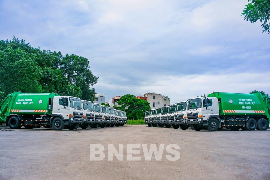 Dàn xe ép rác hiện đại được triển khai nhằm nâng cao hiệu suất lao động, giảm thiểu ô nhiễm môi trường và xây dựng thành phố ngày càng sáng - xanh - sạch - đẹp. Ảnh: Đức Hạnh/Bnews/vnanet.vn