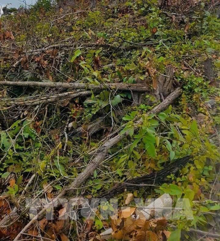 Hiện trường vụ phá rừng tại tiểu khu 1371, xã Uar, tỉnh Gia Lai. Ảnh: Hoài Nam - TTXVN