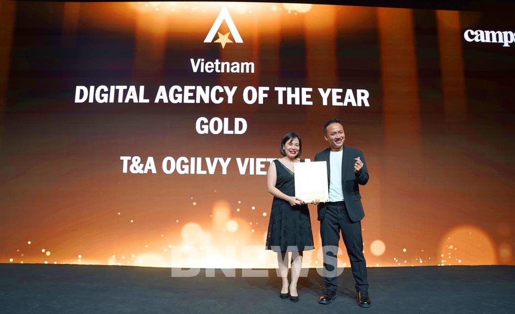 T&A Ogilvy nhận Giải Vàng - Công ty truyền thông số xuất sắc nhất Việt Nam. Ảnh: BNEWS/TTXVN phát