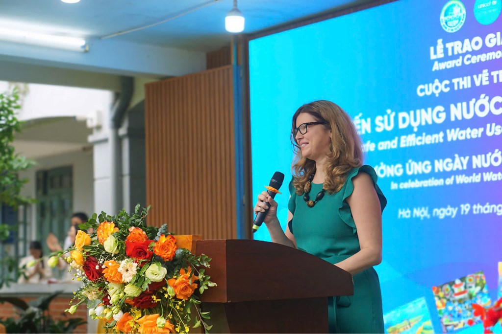 Hưởng ứng Ngày Nước Thế giới (22/3), sáng 19/3, tại Trường THCS Phúc Diễn (Hà Nội), Cục Quản lý tài nguyên nước (Bộ Nông nghiệp và Môi trường) phối hợp với Quỹ Nhi đồng Liên hợp quốc (UNICEF) tổ chức Lễ tổng kết và trao giải Cuộc thi vẽ tranh “Sáng kiến sử dụng nước an toàn, hiệu quả” dành cho học sinh từ 6 đến 15 tuổi trên phạm vi toàn quốc.