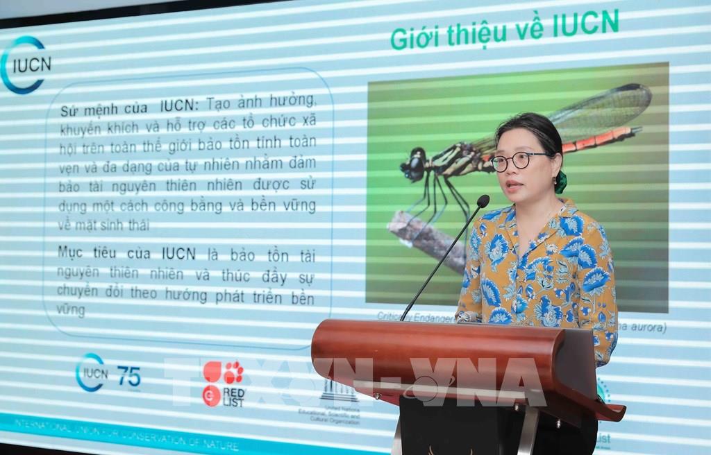 Bà Bùi Thị Thu Hiền, Quản lý Chương trình Biển và vùng bờ của Liên minh Bảo tồn thiên nhiên quốc tế, tập huấn cho giáo viên chuyên đề “Đại dương của chúng ta”, các hệ sinh thái san hô, thảm cỏ biển – tầm quan trọng và thách thức. Ảnh: Phan Phương – TTXVN