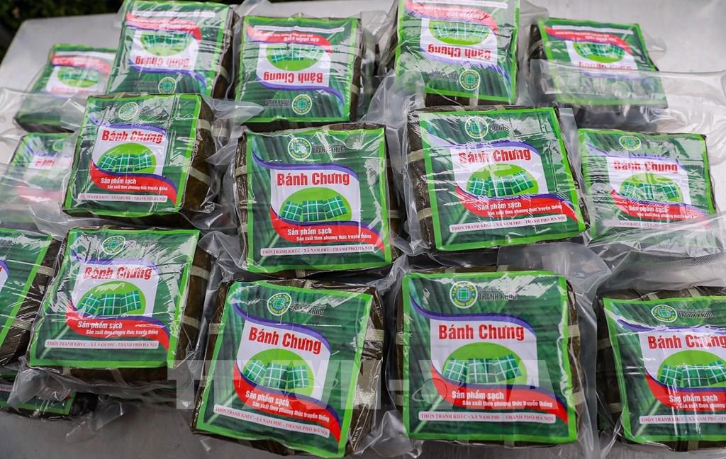 Sản phẩm bánh chưng làng Tranh Khúc (xã Nam Phù, Hà Nội) được đóng gói mang đi tiêu thụ khắp mọi miền Tổ quốc. Ảnh: Khánh Hoà - TTXVN