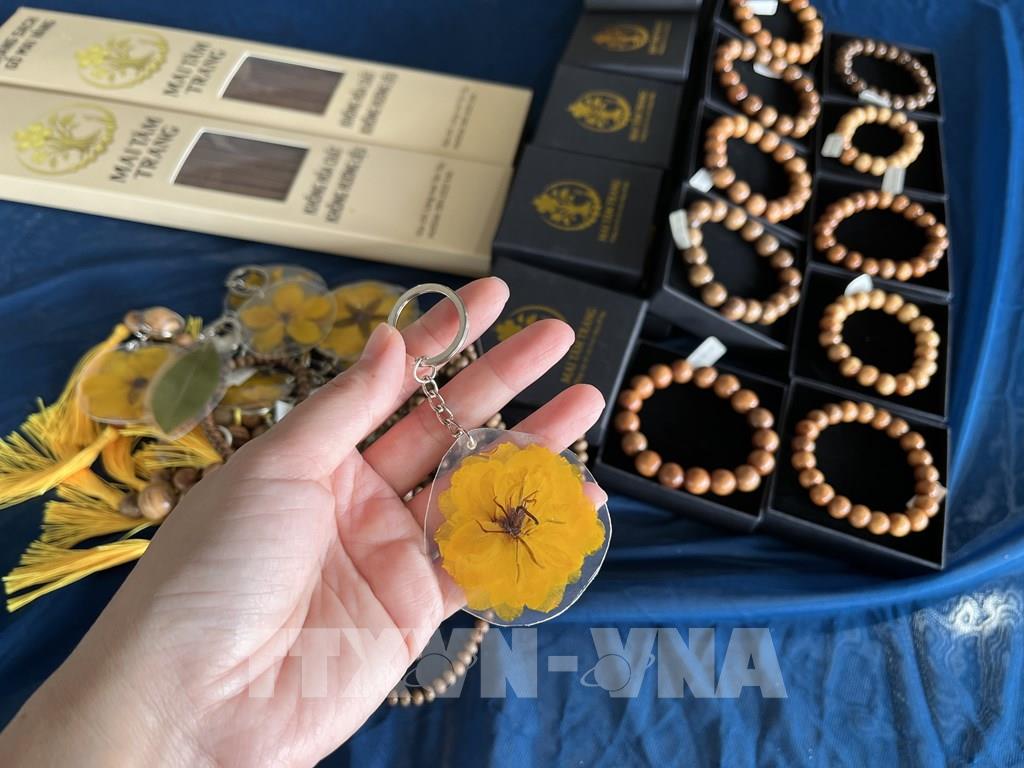 Các sản phẩm thủ công từ cây mai vàng của Làng mai Tân Tây, tỉnh Tây Ninh. Ảnh: Đức Hạnh - TTXVN