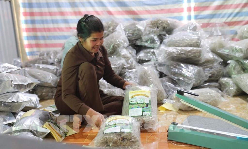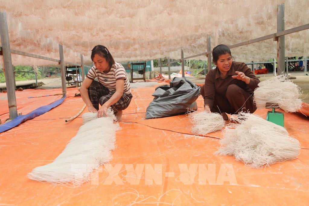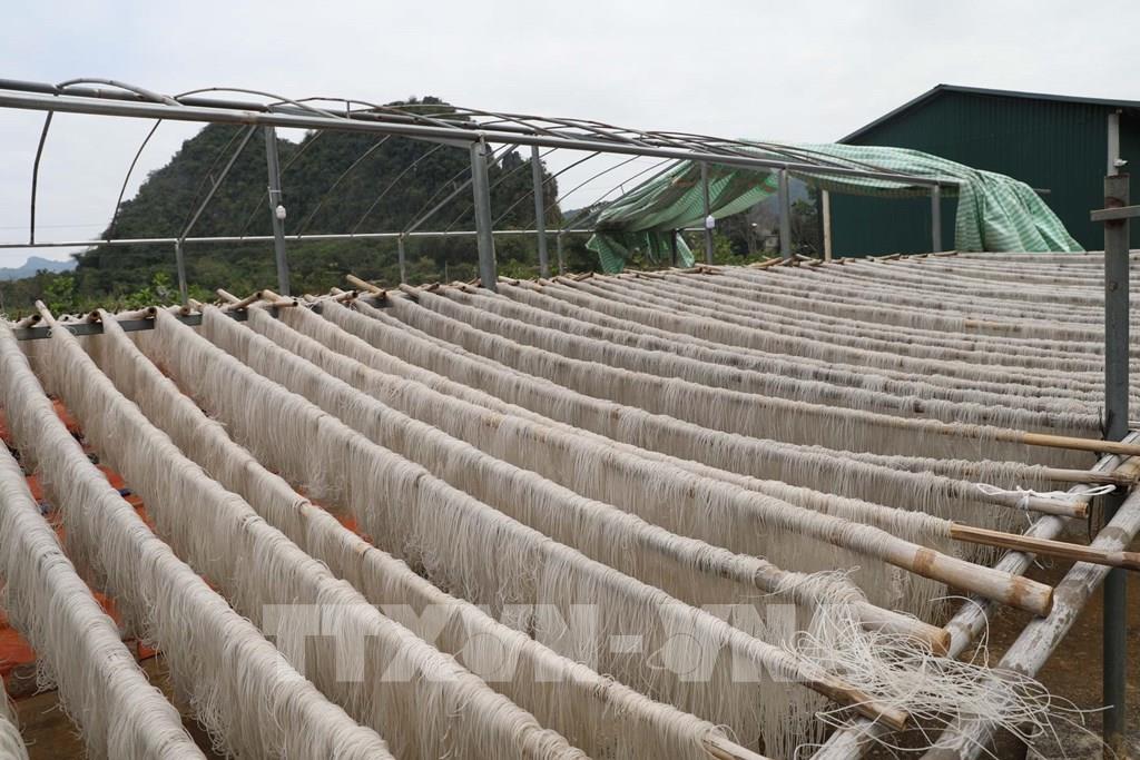 Người dân làm miến dong Đồi Ao, xã Cẩm Thạch, Thanh Hóa để bán dịp cận Tết. Ảnh: Nguyễn Nam-TTXVN
