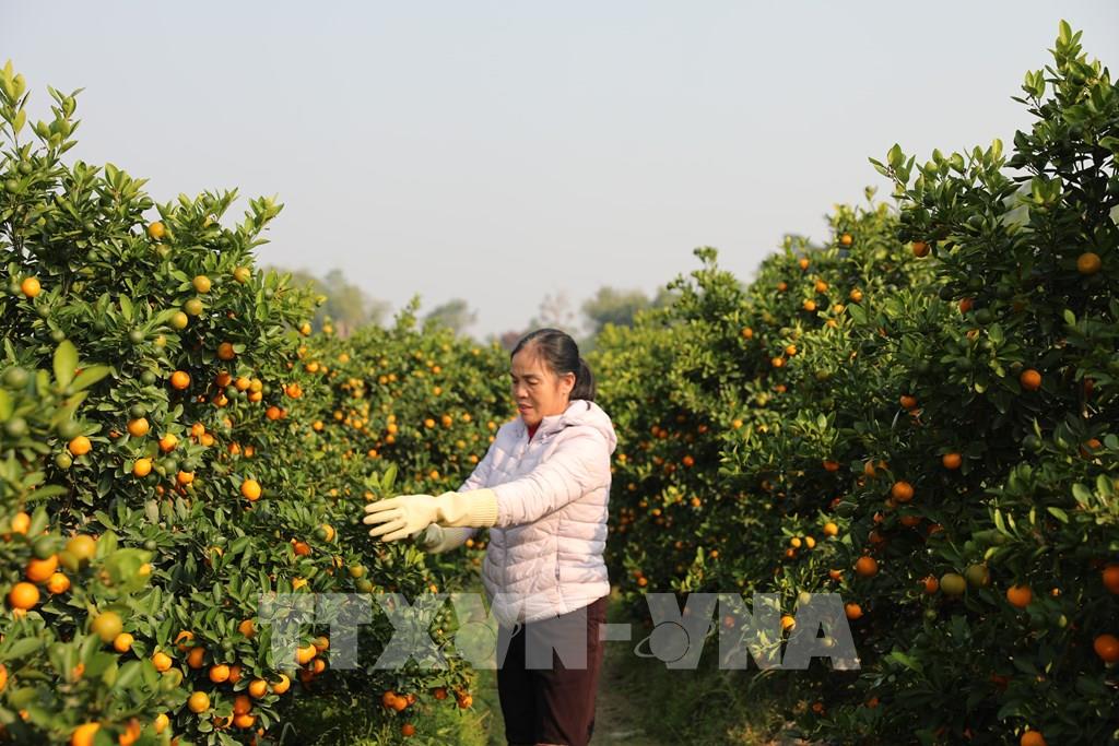 Vườn quất Hợp Tiến chuẩn bị cung ứng cho thị trường Tết. Ảnh: Khiếu Tư - TTXVN