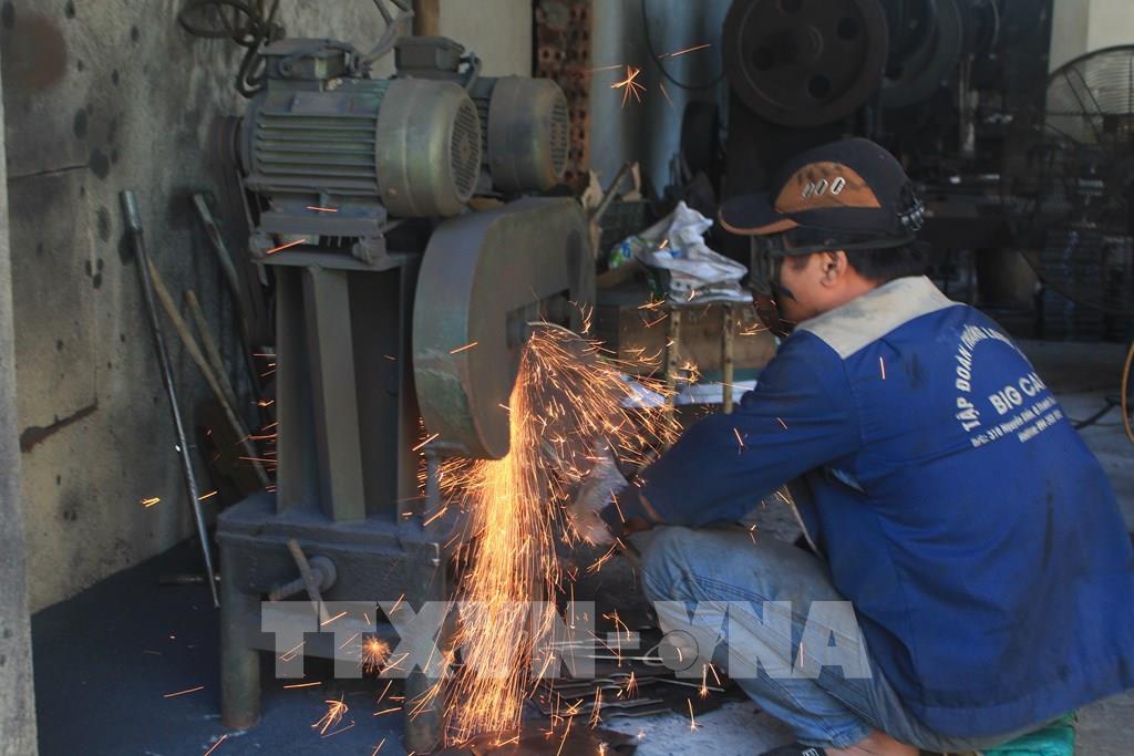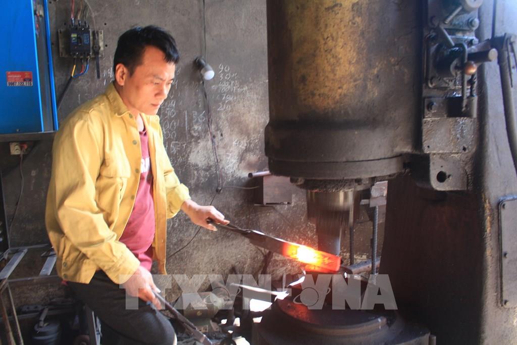 Hoạt động sản xuất tại làng rèn Tiến Lộc. Ảnh: Khiếu Tư - TTXVN