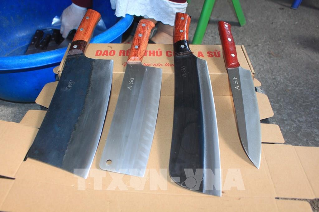 Sản phẩm dao Tiến Lộc đã khẳng định thương hiệu nhờ độ sắc bén và bền chắc. Ảnh: Khiếu Tư - TTXVN