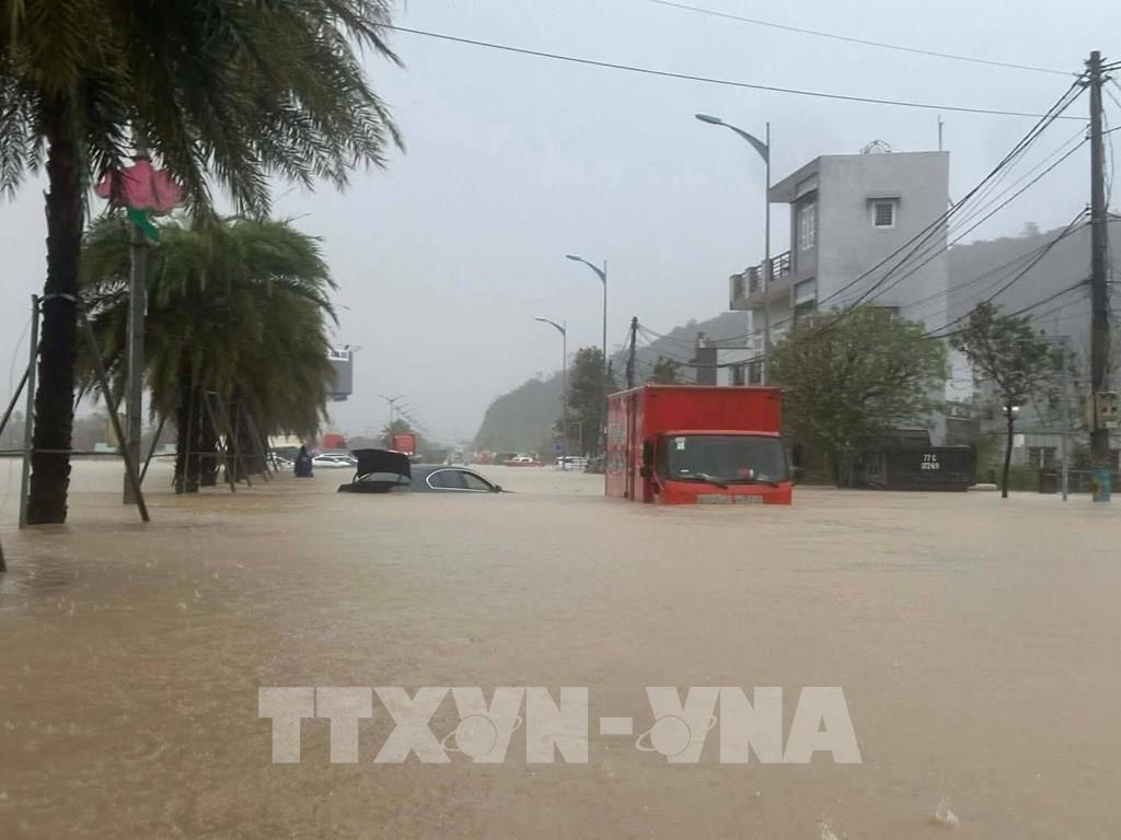 Nhiều khu vực tại Gia Lai ngập sâu trong mưa lũ. Ảnh: TTXVN phát