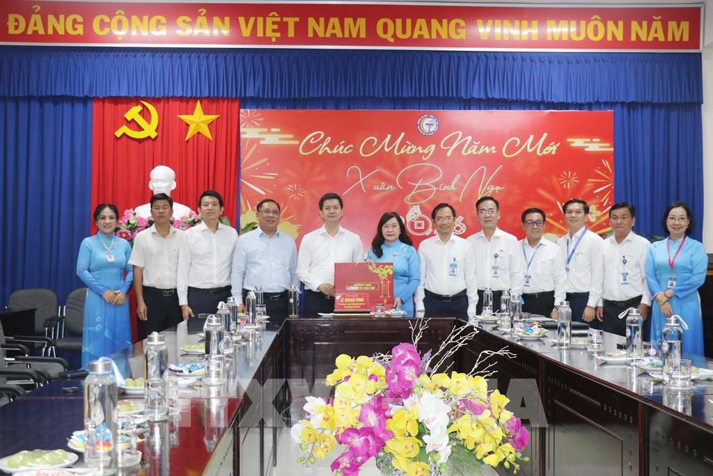 Đoàn công tác TP Cần Thơ đến thăm, chúc Tết Công ty TNHH MTV xuất nhập khẩu Lương thực Ngọc Lợi. Ảnh: Ngọc Thiện- TTXVN