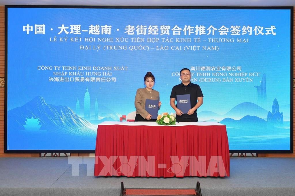 Dịp này, các doanh nghiệp hai bên đã giới thiệu những thế mạnh, tiềm năng nổi bật với mong muốn hợp tác sâu rộng nhằm tiếp tục góp phần thúc đẩy tăng trưởng thương mại song phương, nâng cao kim ngạch xuất nhập khẩu giữa Việt Nam và Trung Quốc trong tương lai.Để hiện thực hóa các định hướng hợp tác, tại hội nghị đã diễn ra lễ ký kết thỏa thuận hợp tác giữa các doanh nghiệp xuất nhập khẩu nông sản, công nghệ số... Lào Cai cam kết chỉ đạo các cơ quan chuyên môn phối hợp chặt chẽ với châu Đại Lý, phát huy vai trò cầu nối thương mại - đầu tư, tạo điều kiện thuận lợi nhất về thủ tục, hạ tầng, dịch vụ logistics, hỗ trợ doanh nghiệp Đại Lý và các địa phương tỉnh Vân Nam hoạt động hiệu quả qua địa bàn tỉnh.