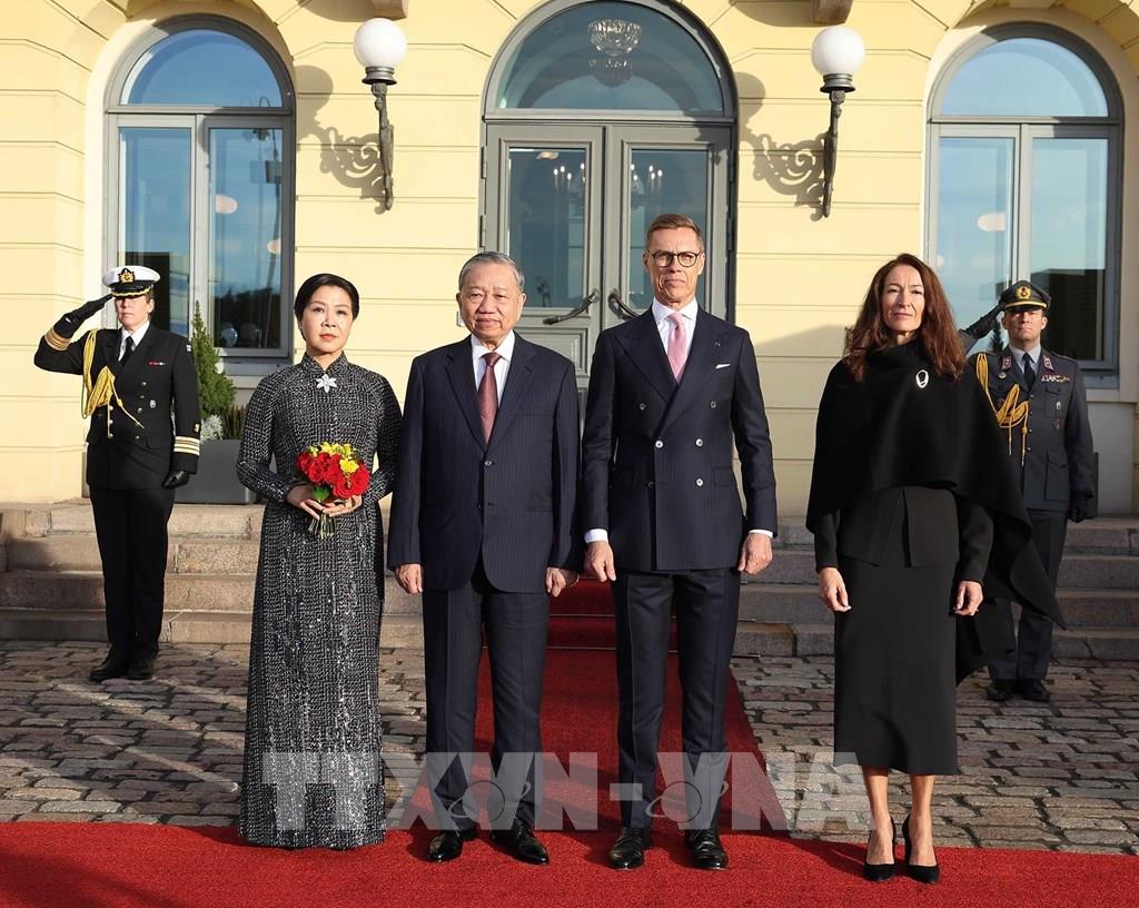 Tổng Bí thư Tô Lâm bày tỏ vui mừng và phấn khởi đến thăm đất nước Phần Lan tươi đẹp, sáng tạo, văn hóa và nhân ái; cảm ơn ngài Tổng thống, Phu nhân và nhân dân Phần Lan đón tiếp trọng thị, thân tình và thiện cảm. Tổng Bí thư Tô Lâm nhấn mạnh Việt Nam đánh giá cao vai trò và mối quan hệ tốt đẹp với Phần Lan; tin tưởng, chuyến thăm Phần Lan này sẽ đóng góp tích cực, mở ra trang mới trong quan hệ giữa hai nước, đóng góp cho hòa bình, ổn định, phát triển ở khu vực và thế giới.