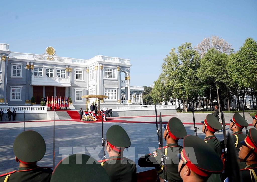 Tổng Bí thư, Chủ tịch nước Lào Thongloun Sisoulith chủ trì Lễ đón Tổng Bí thư Tô Lâm. Ảnh: Dương Giang - TTXVN