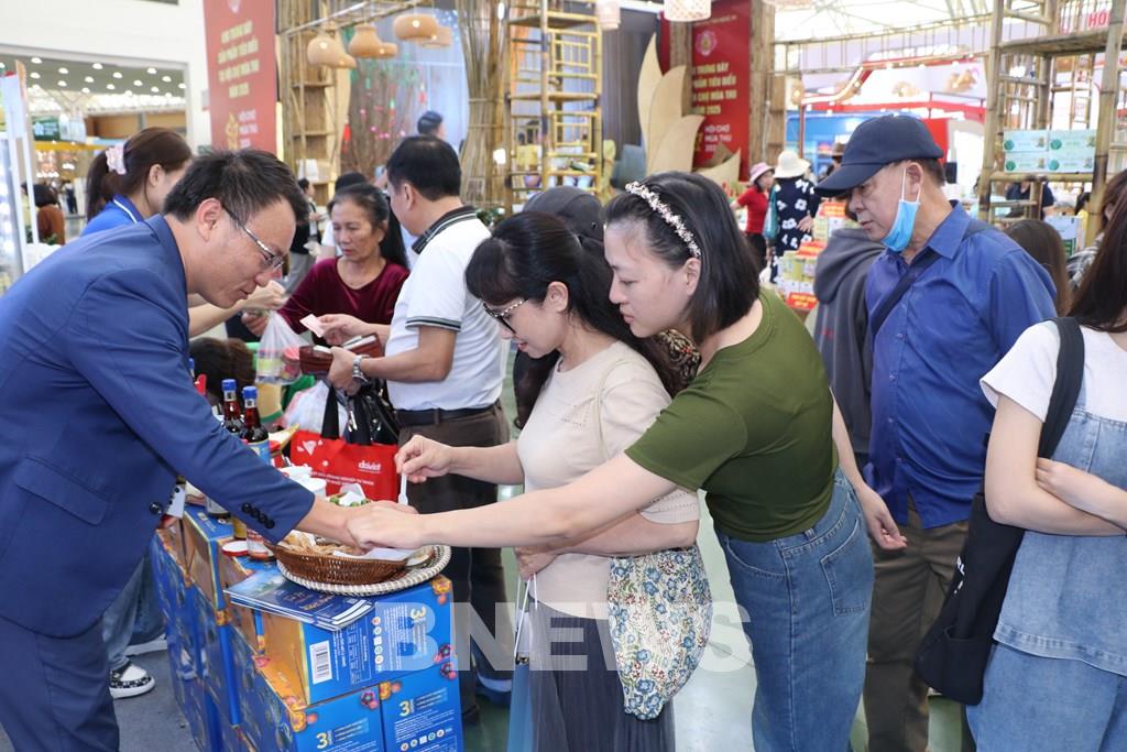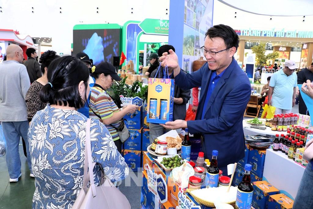 Không ít người còn dùng cả xe kéo siêu thị mua các sản phẩm của Lê Gia về làm quà, bất chấp khu triển lãm rộng hàng chục hecta. Với họ, đó không chỉ là món hàng, mà là “món quà quê hương” đáng quý.