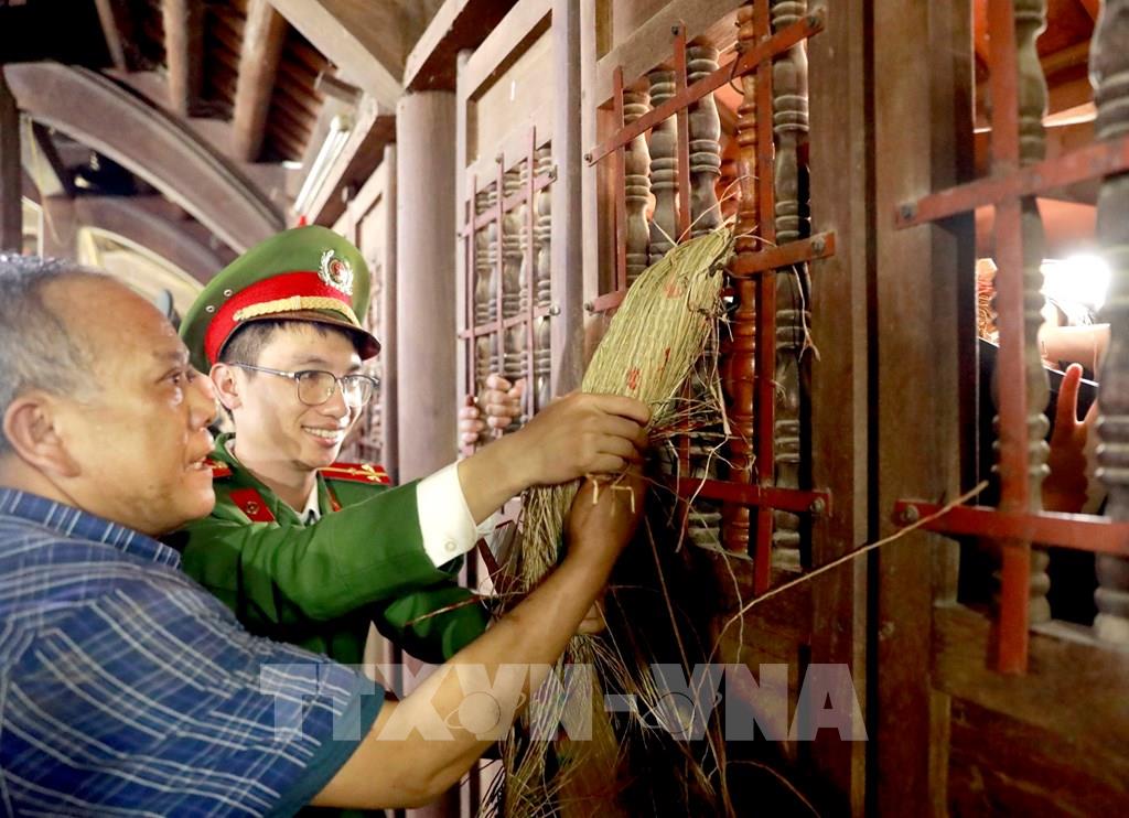 Nghi thức tắm “Bụt” được thực hiện tại giếng cổ của làng. Ảnh: Hoàng Hùng - TTXVN