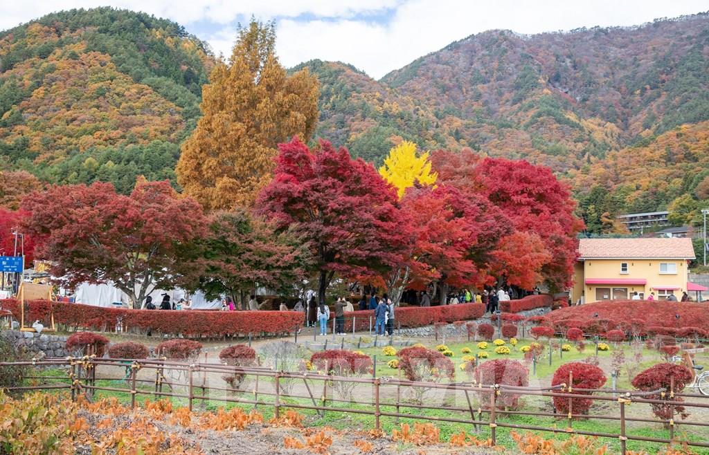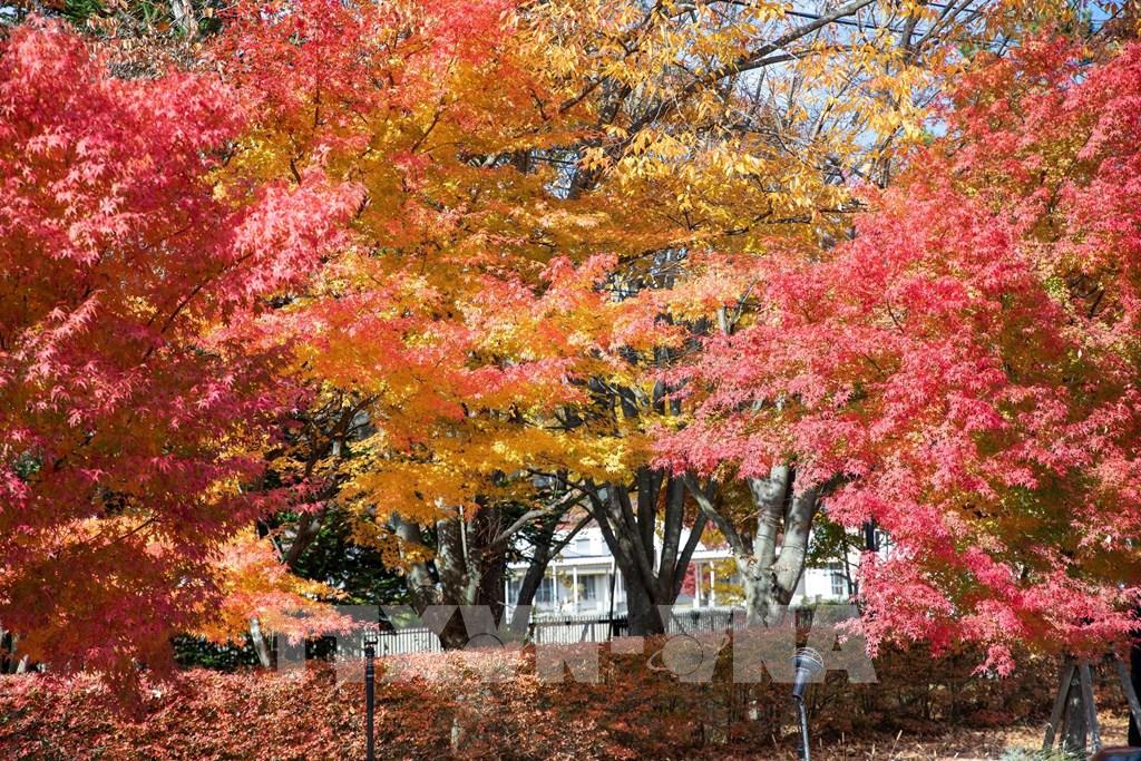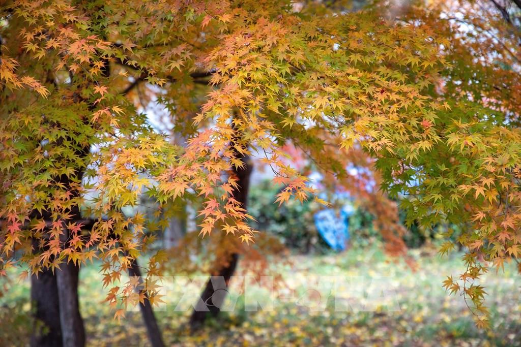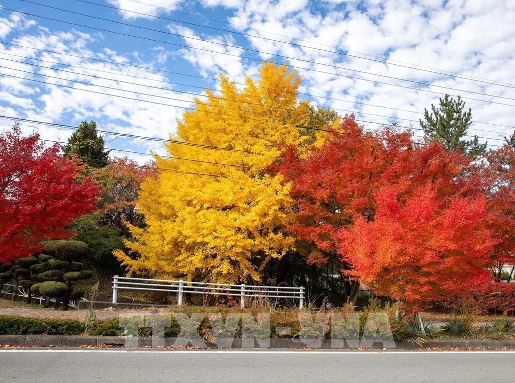 Những thảm lá rực rỡ sắc màu đỏ, cam, vàng - đặc trưng của mùa Thu Nhật Bản. Ảnh: Xuân Giao - PV TTXVN tại Nhật Bản