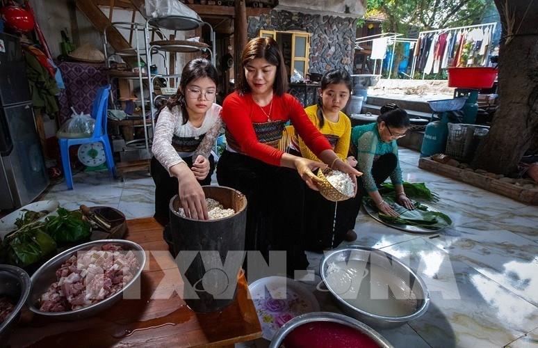 Lễ cúng mừng cơm mới là dịp để người Thái trở về sum họp cùng gia đình. Ảnh: Trọng Đạt - TTXVN