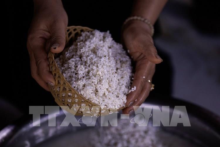 Gạo được đồ thành cơm xôi là sản vật thiêng của nương rẫy, là linh hồn của lễ mừng cơm mới. Ảnh: Trọng Đạt - TTXVN