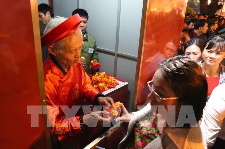 Người dân và du khách thập phương nhận lương của đền Trần Thương xuân Mậu Tuất 2018. Ảnh: Thành Đạt-TTXVN