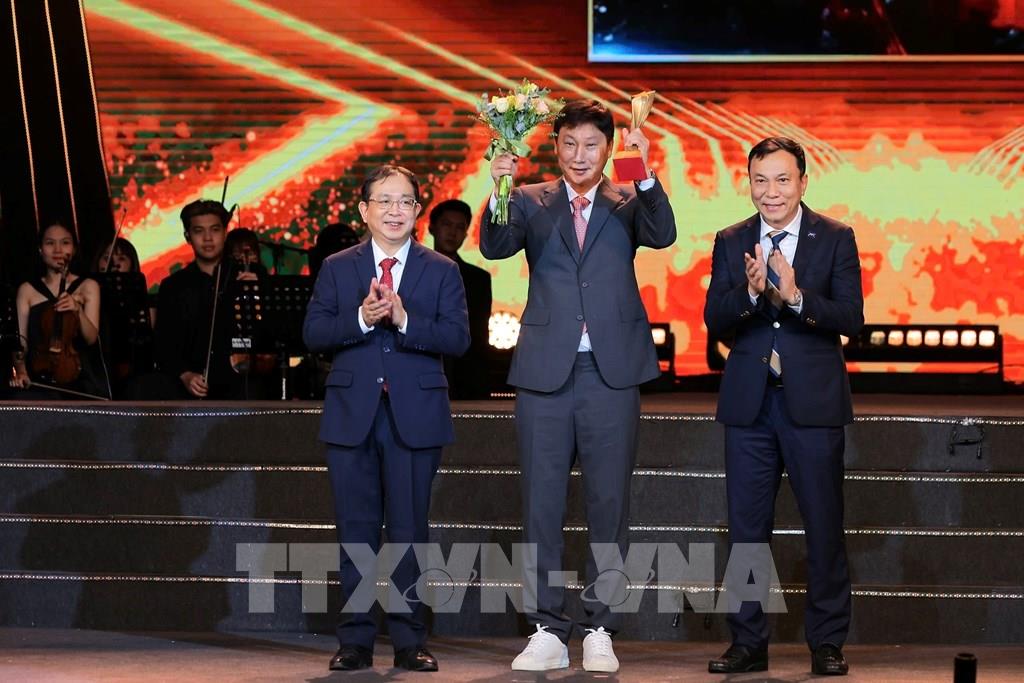 Phó Tổng Giám đốc TTXVN Nguyễn Tuấn Hùng trao cho Đại diện đội tuyển U22 Việt Nam giành HCV SEA Games 33 nhận giải Chiến tích thể thao. Ảnh: Hoàng Hiếu - TTXVN