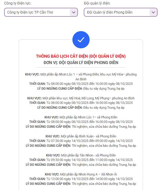 Để cập nhật lịch cắt điện Cần Thơ mới nhất, doanh nghiệp và người dân có thể truy cập: Lịch cắt điện Cần Thơ hôm nay.
