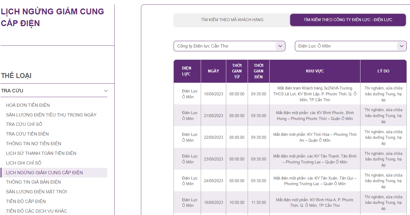 Để cập nhật lịch cắt điện Cần Thơ, người dân có thể truy cập tại đây.
