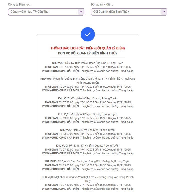 Để cập nhật lịch cắt điện Cần Thơ mới nhất, doanh nghiệp và người dân có thể truy cập: Lịch cắt điện Cần Thơ hôm nay.