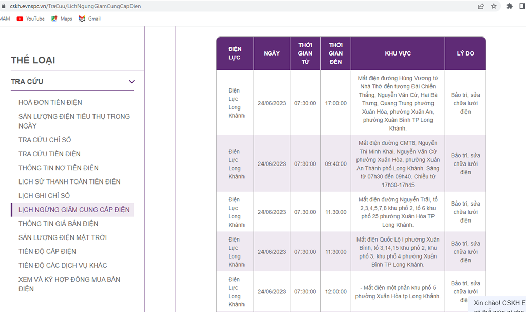Lịch cắt điện (lịch tạm ngừng cấp điện mới nhất) cập nhật mới nhất tại Biên Hòa, lịch cắt điện tại Đồng Nai ngày mai 6/4.