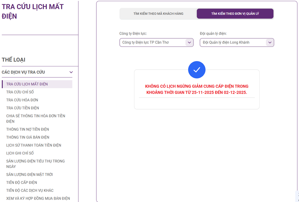 Lịch cắt điện Cần Thơ ngày mai 26/11 cập nhật mới nhất