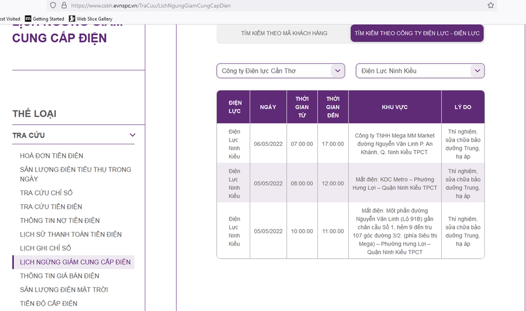 Để cập nhật lịch cắt điện Cần Thơ, người dân có thể truy cập: https://cskh.evnspc.vn/DichVuTTCSKH/DichVuTTCSKHSPC?index=7