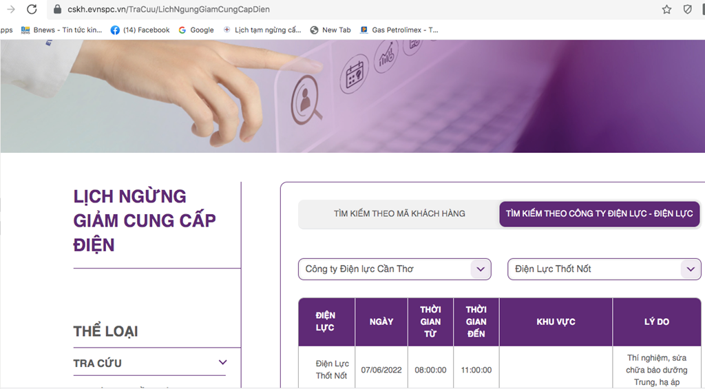 Để cập nhật lịch cắt điện Cần Thơ, người dân có thể truy cập: https://cskh.evnspc.vn/TraCuu/LichNgungGiamCungCapDien- Từ khóa :