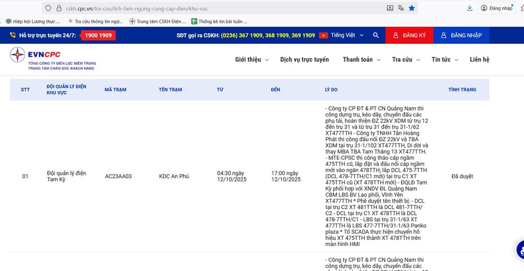 Công ty TNHH MTV Điện lực Đà Nẵng thông báo lịch tạm ngừng cung cấp điện, lịch cúp điện Đà Nẵng ngày mai 12/10 cập nhật mới nhất như sau:
