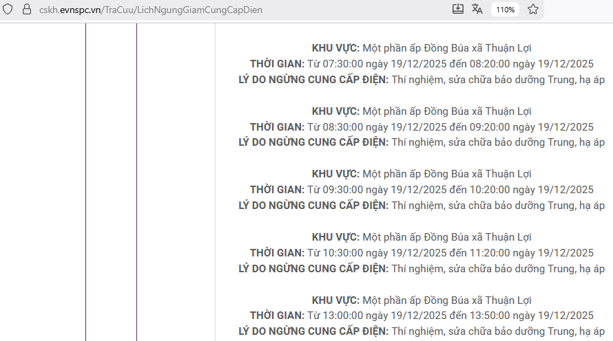 | THỜI GIAN: Từ 10:20:00 ngày 19/12/2025 đến 11:30:00 ngày 19/12/2025 |