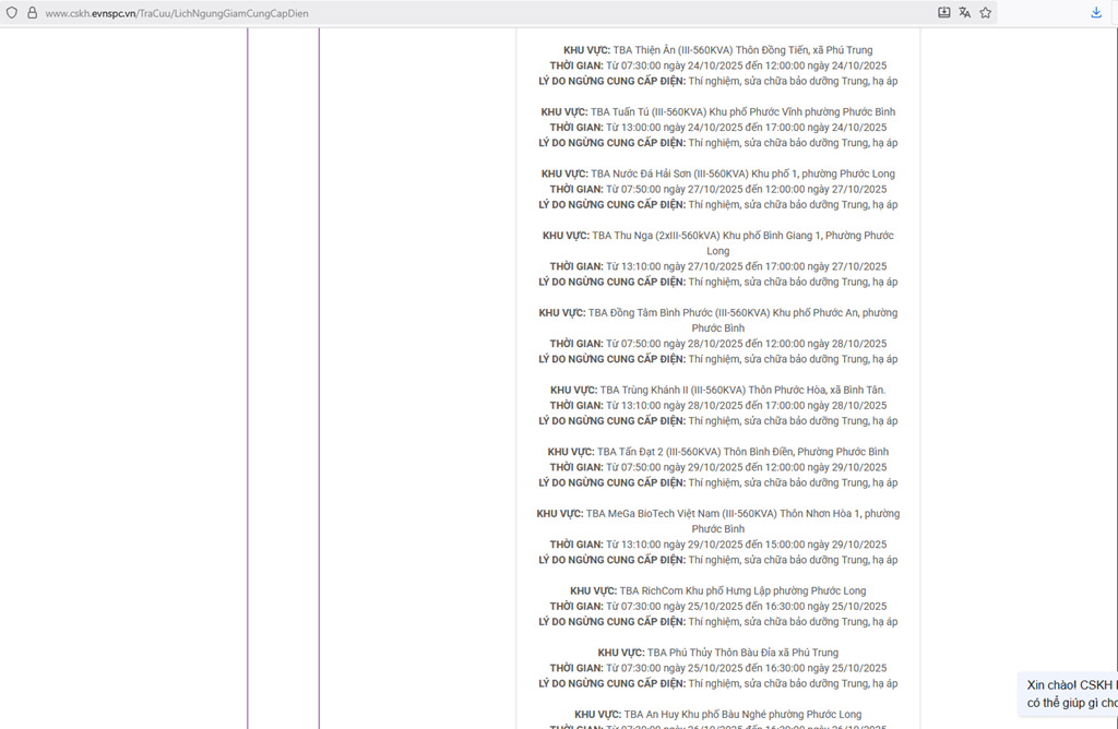 Cập nhật mới nhất lịch cắt điện cụ thể tại Đồng Nai từ website của Tổng công ty Điện lực miền Nam (EVNSPC), Công ty TNHH MTV Điện lực Đồng Nai vào ngày mai 24/10.