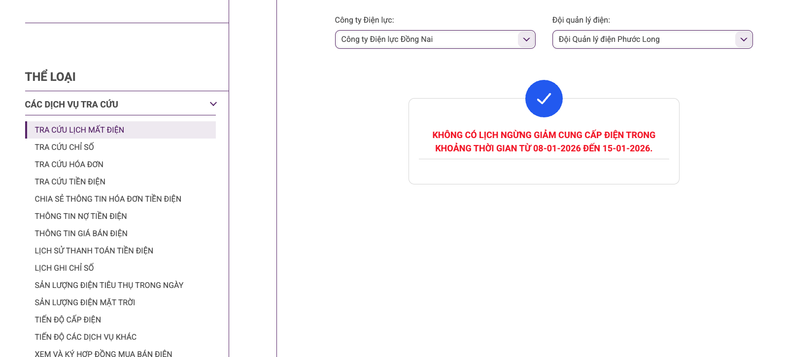- lịch ngừng cung cấp điện đồng nai