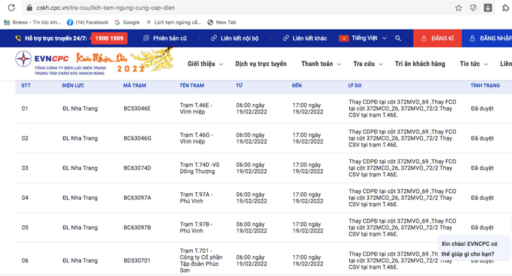 Lịch cắt điện Khánh Hòa ngày mai 19/2 cập nhật mới nhất