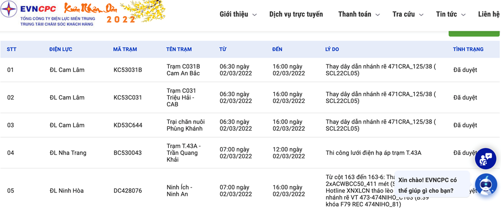Để theo dõi lịch cắt điện tại tỉnh Khánh Hòa, người dân có thể truy cập: