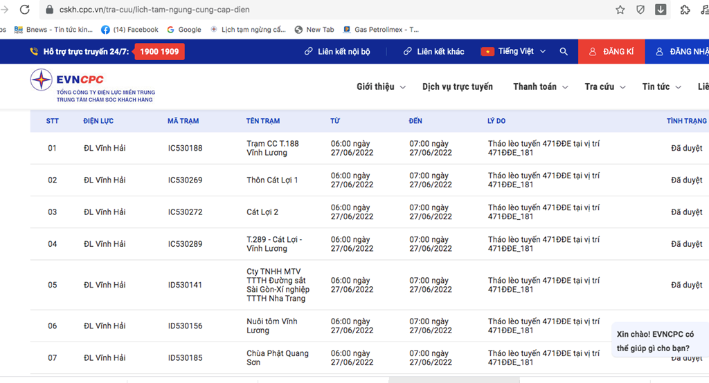 Để theo dõi lịch cắt điện tại tỉnh Khánh Hòa, người dân có thể truy cập:https://cskh.cpc.vn/frm_LichNgungCungCapDien_KhuVuc.aspx