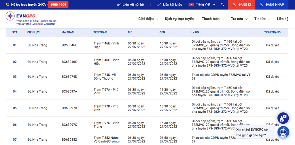 Lịch cắt điện Khánh Hòa ngày mai 27/7 cập nhật mới nhất
