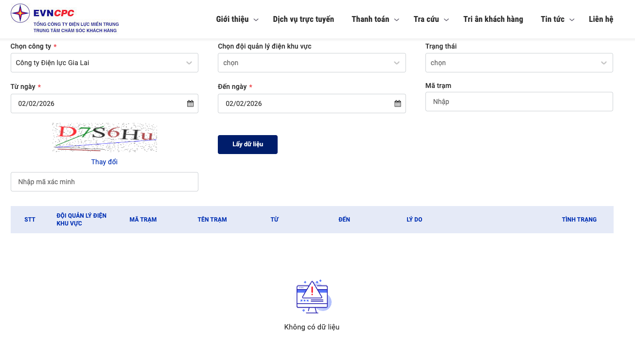 Công ty Điện lực Gia Lai thông báo không có lịch tạm ngừng cung cấp điện (lịch cúp điện Gia Lai, lịch ngừng cung cấp điện Quy Nhơn) Gia Lai hôm nay và ngày mai 2/2/2026.