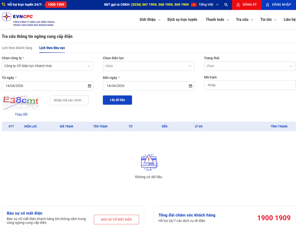 Công ty Cổ phần Điện lực Khánh Hòa thông báo lịch tạm ngừng cung cấp điện (lịch cúp điện Nha Trang, lịch ngừng cung cấp điện Nha Trang - Khánh Hòa) Nha Trang, Khánh Hòa hôm nay và ngày mai 14/4 cập nhật mới nhất như sau: