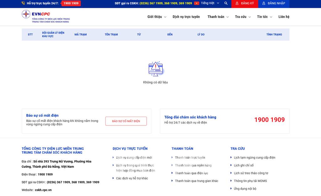 Lịch cắt điện trên địa bàn Thành phố Đà Nẵng ngày mai 11/2/2026 cập nhật mới nhất từ website Tổng công ty Điện lực miền Trung.